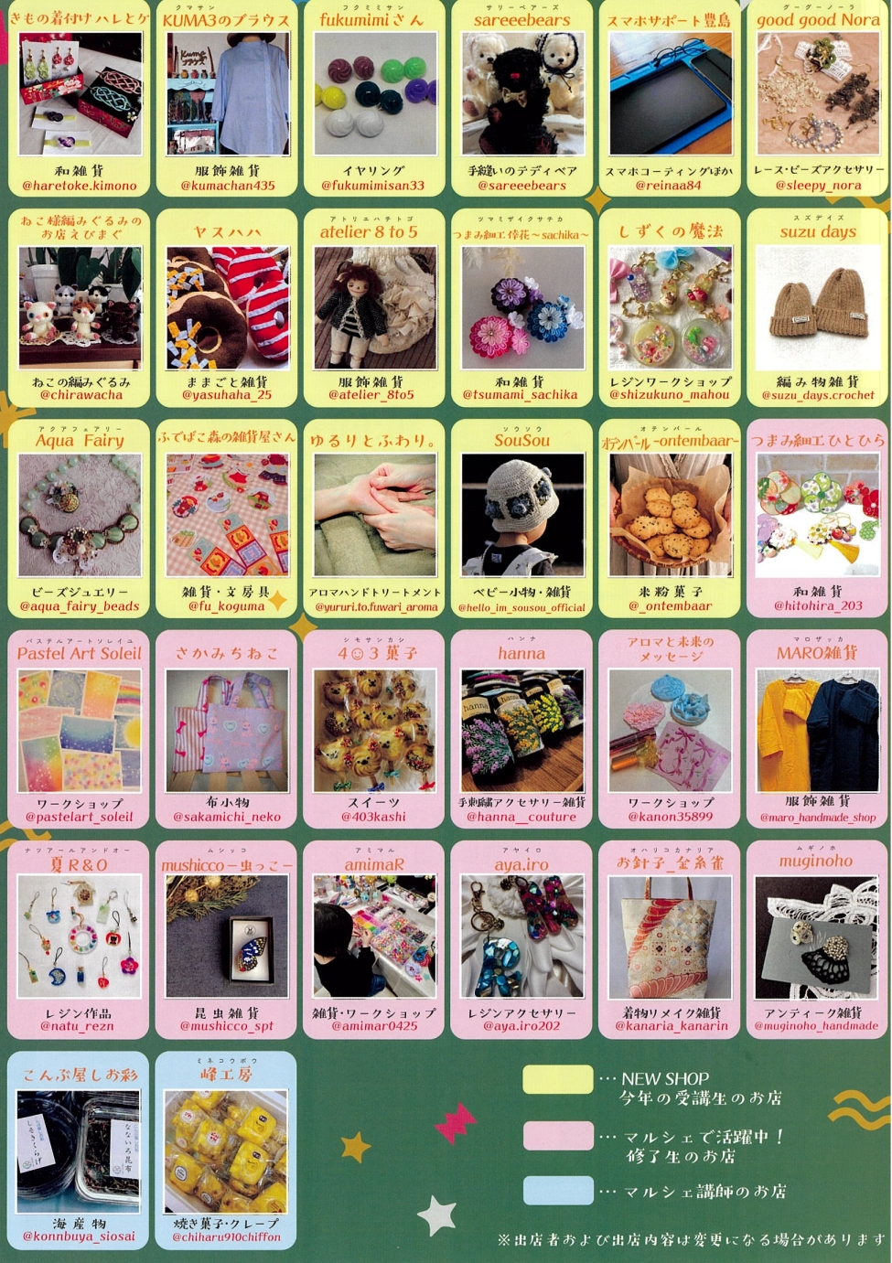 雑貨づくりやお菓子の販売など出店もり沢山のマルシェにぜひお越しください!