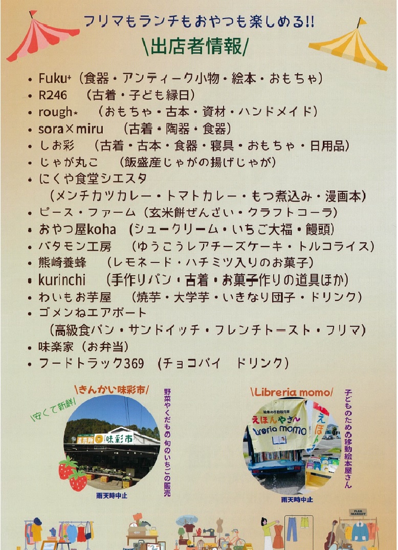 シェアする Tweet 掘り出し市場 (クリックすると拡大表示します) 食べるその他 概要 昔ながらのフリーマーケット✨ (出品内容)食器、陶器、古着、古本、おもちゃ、中古絵本、資材など フリマのほかに、ランチやおやつも楽しめます!! 開催日 2026年3月1日(日) 10 : 00 ~ 15 : 00 開催場所 【住所】 魚の町5 【施設名称】 魚の町公園 対象 どなたでも参加できます。 参加費 参加費はありません。 定員 定員はありません。 持ち物 雨天時の対応 小雨決行、荒天中止 主催者名 Happy market しお彩 関連URL Instagram URL 事前申し込み 不要 PDFの表示 シェアする Tweet 音楽の楽しさを伝える吹奏楽の響き ~長崎に根ざし、仲間と奏でる本格サウンド~ アンサンブル・ラフォーリア 団長 柴田智美さん