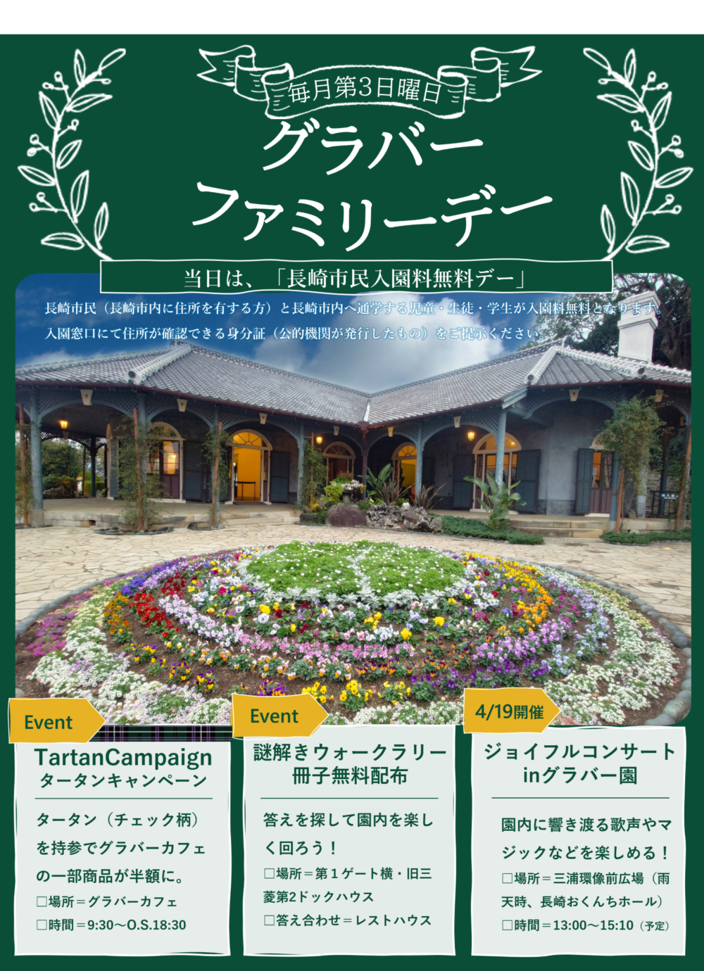 [第3日曜日(4/19)は、長崎市民入園料無料デー🎵]