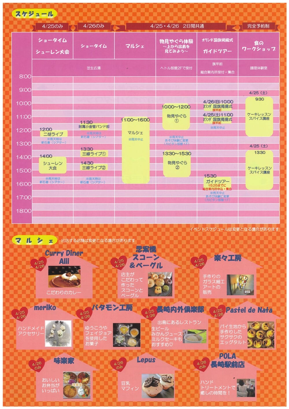 雨天も開催しますが、一部イベントは雨天中止、場所変更の可能性があります。