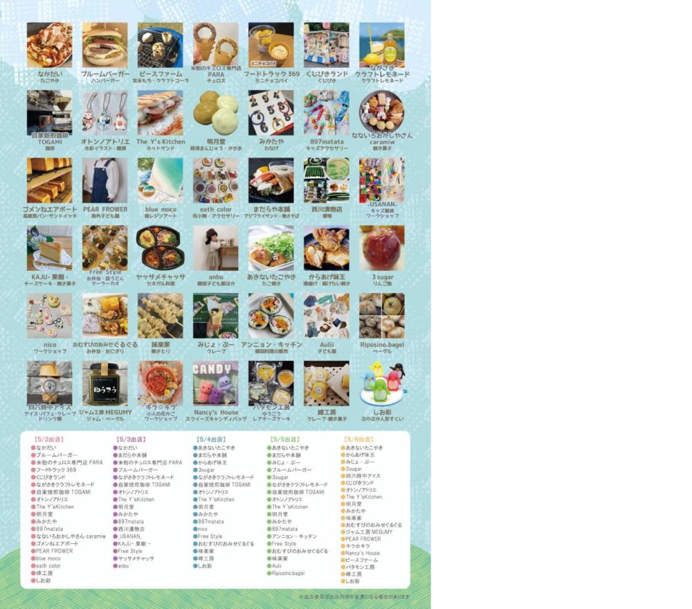 スイーツやグルメだけでなく、ハンドメイド雑貨や遊べるゲームコーナーなど、おいしいもの、楽しいことが盛りだくさん♪